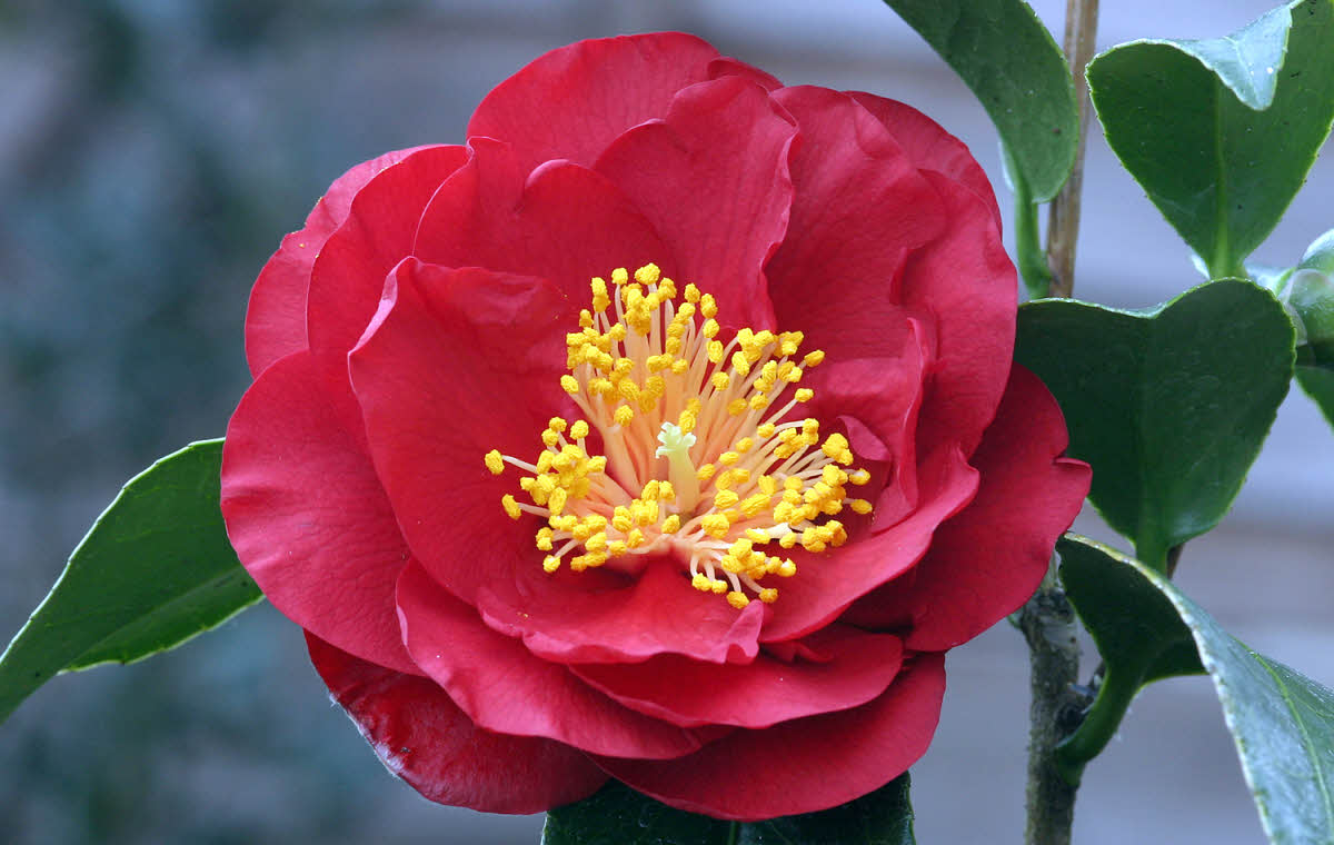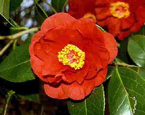 Probably the darkest red camellia flower for general cultivation. Good in a container.
