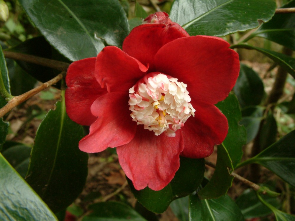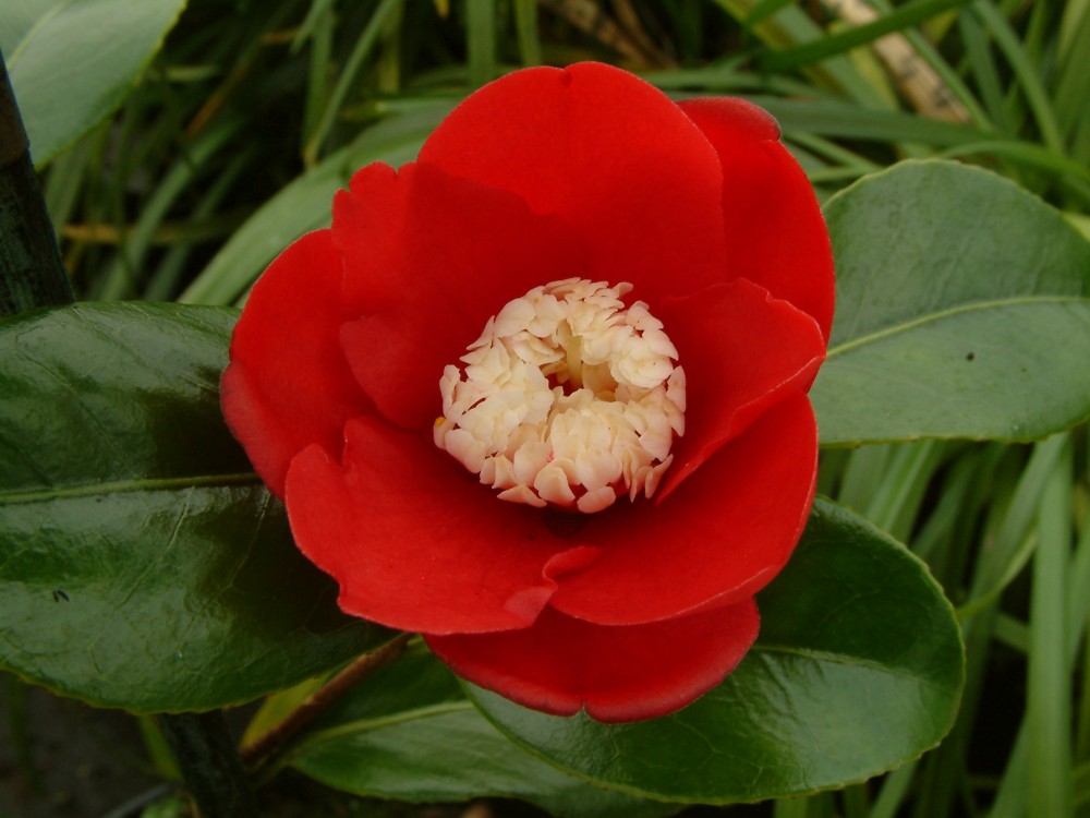 Flowers: small (5-6cm across) anenome form; red with a white petaloid centre.