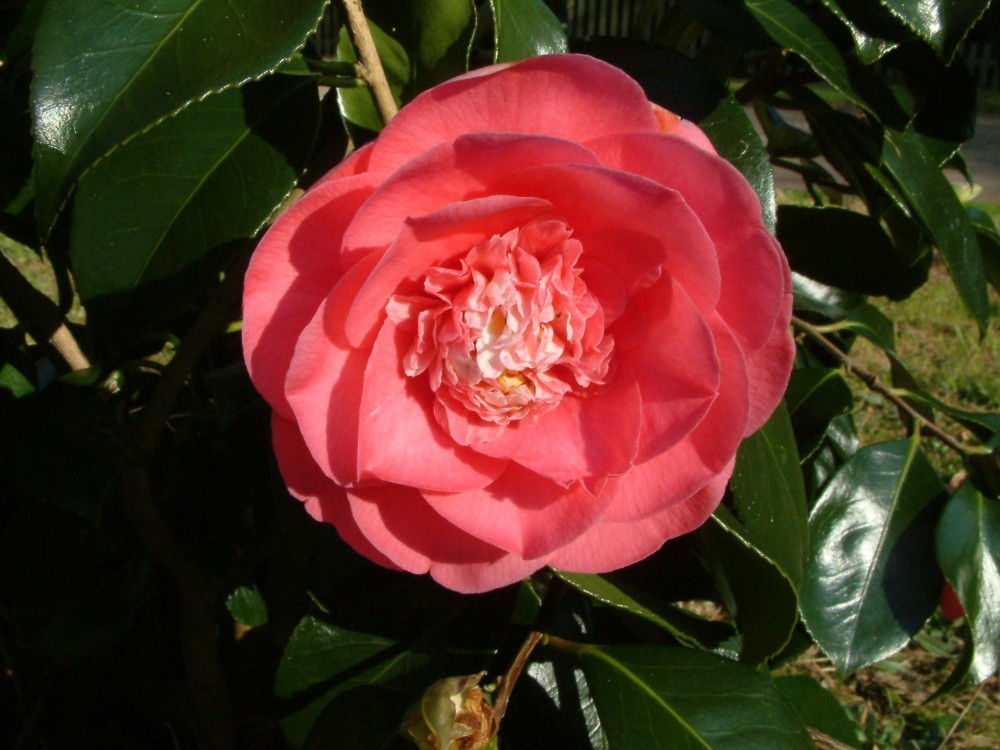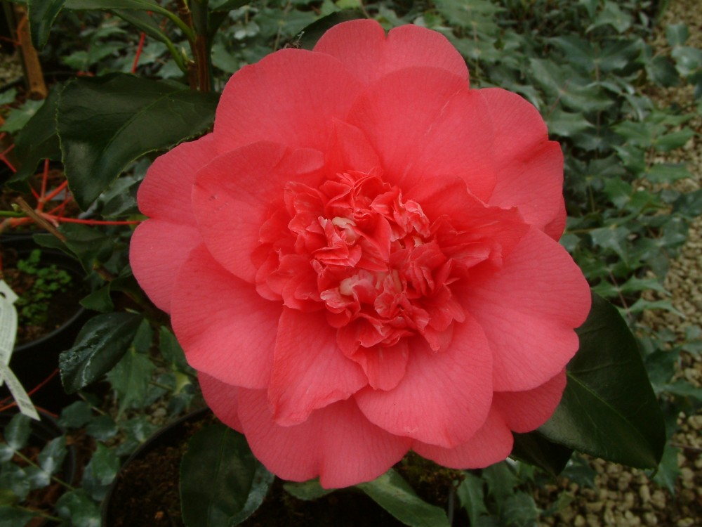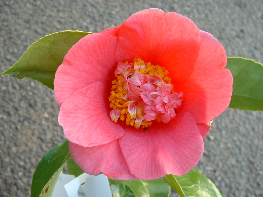Flowers: very large (to 12.5cm) anemone form with notched petals; deep peach pink with occasional white petaloids.