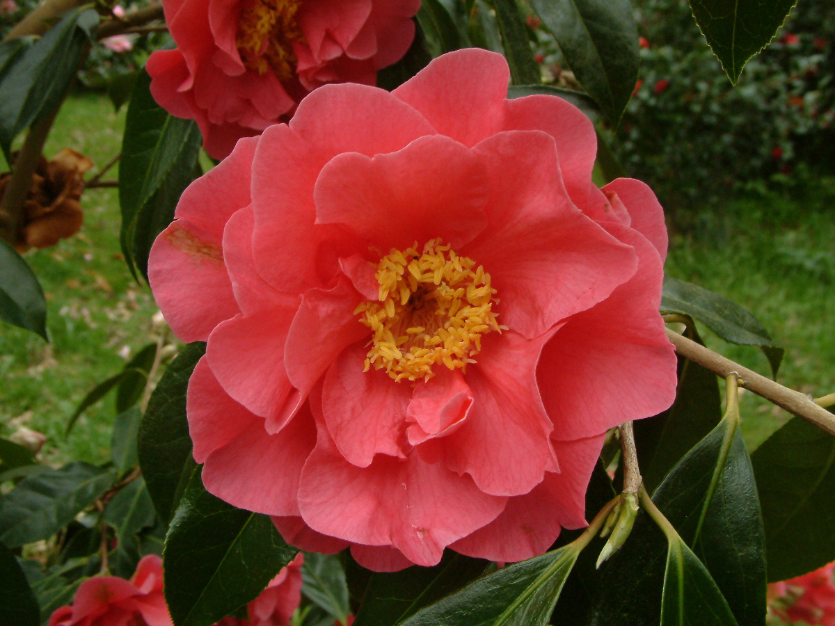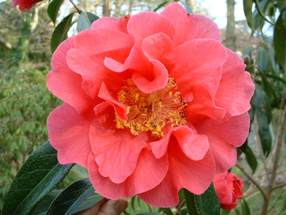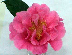 Flowers: very large (to 15cm) semi-double rose pink flowers with wavy edges and prominent stamens.