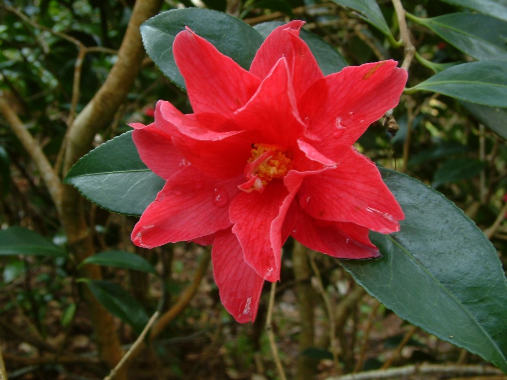 Flowers: to 9cm across, bell shaped bright coral flowers with prominent stamens.