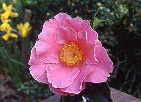 Reticulata hybrid of Cornelian (Yunnan retic. Damanao) and Peony Flower (Yunnan retic. Mudan Cha). California 1967