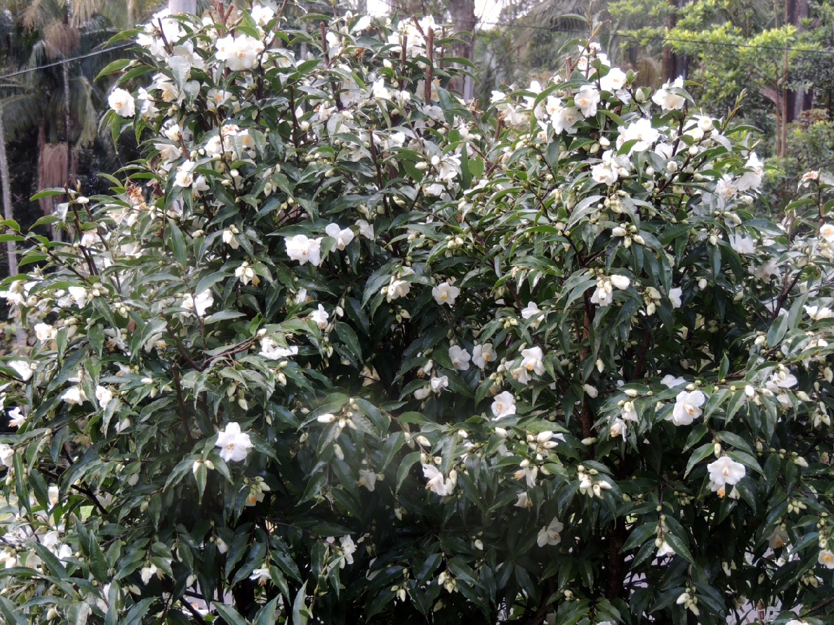 Camellia japonica 'Snowflake' Originated in the UK. Flowers: medium sized, white single.