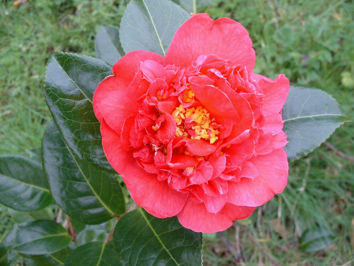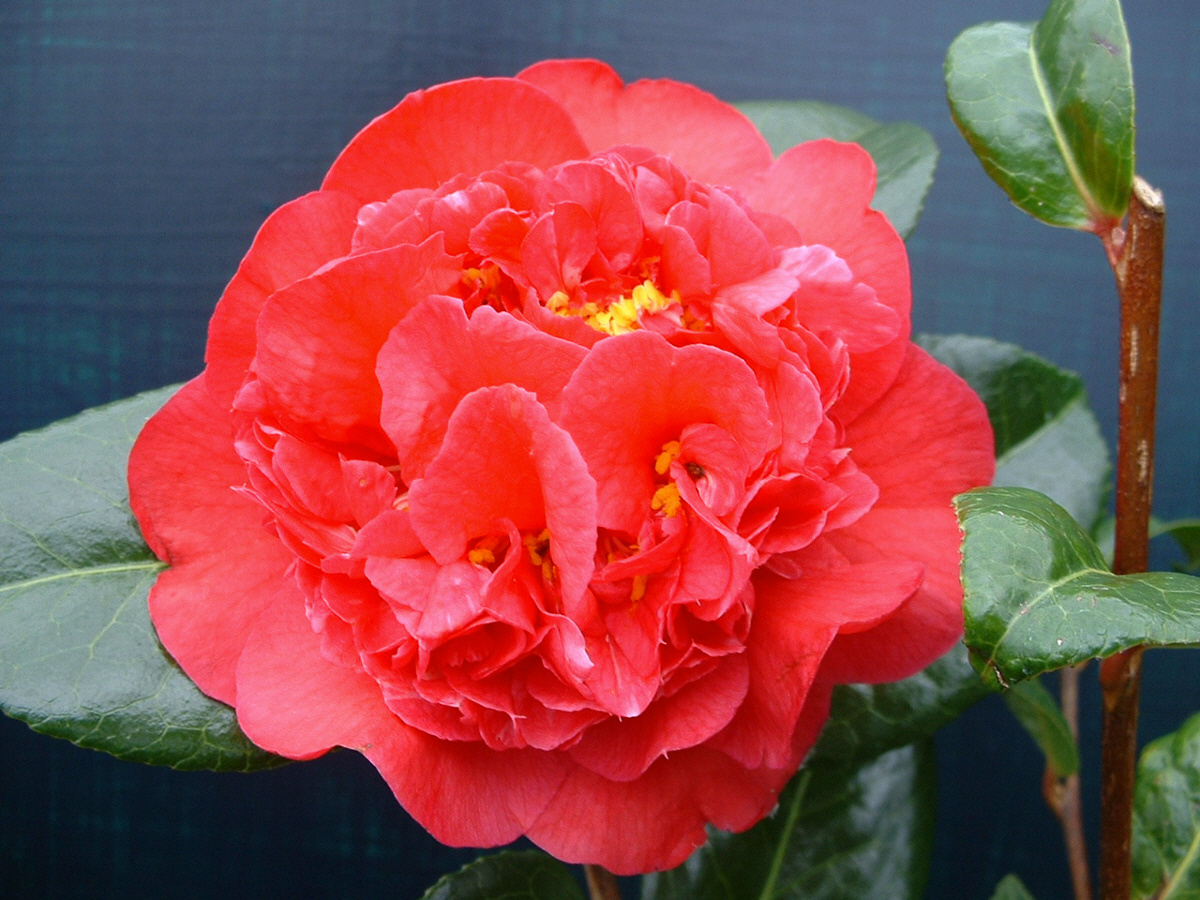 Flowers: very large (to 12cm); loose ruffled peony form; very deep pink - almost red.