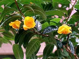 Camellia nitidissima (chrysantha)Distribution: Guanxi Province, S.W.China Small yellow flowers Requires subtropical conditions and wet summers Little success so far in hybridizing to produce good garden varieties