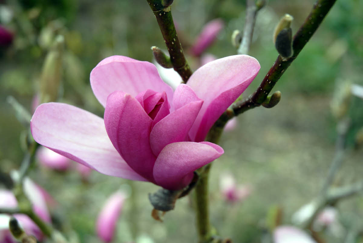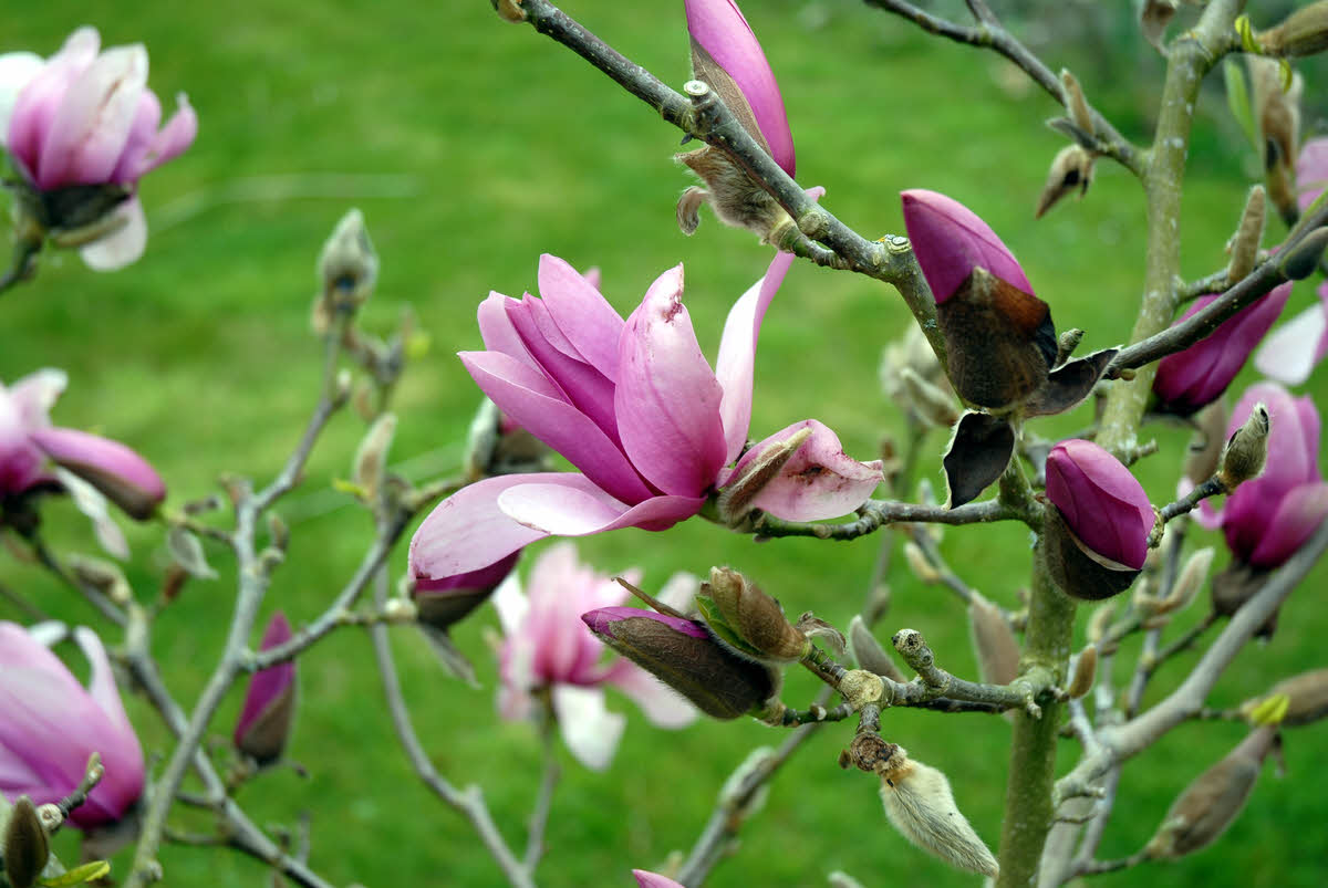 This is a deliberate cross made by Philip Tregunna, head gardener of Caerhays Castle, in 1959. It flowered for the first time in 1967.