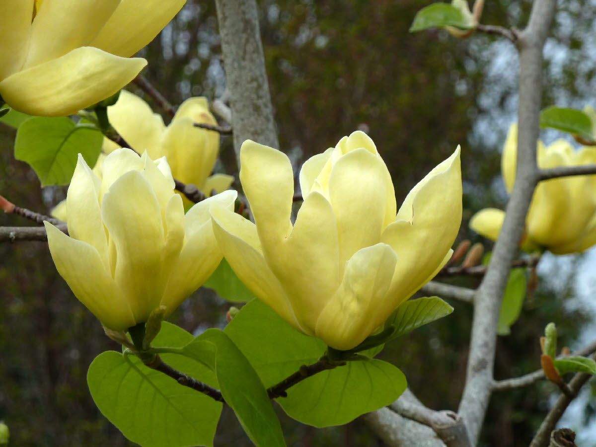 Flowers: 9 tepals, 8cm long, on opening a clear primrose yellow, seen over a 4-6 week period from mid April.
