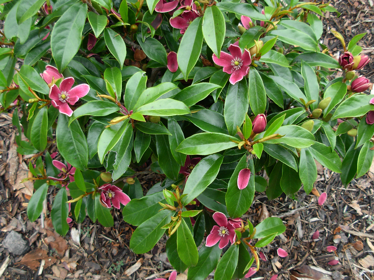 Leaves: narrowly oblong, obovate, or narrowly obovate, rarely narrowly elliptic, 7-13 X 2.5-4 cm, leathery, dark green, glabrous and glossy.