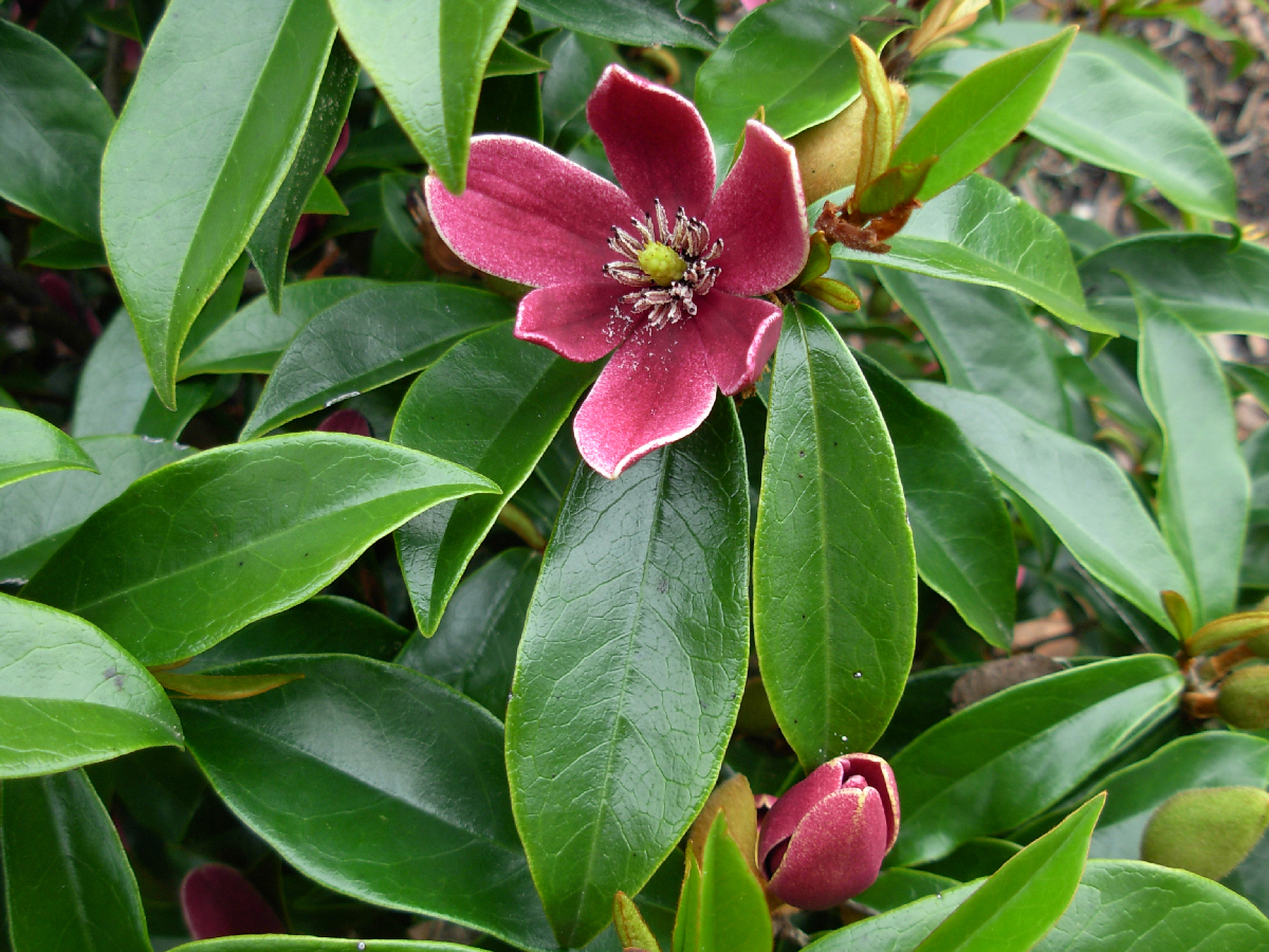Flowers: Tepals 6, purplish red to dark purple, long elliptic, 1.8-2 X 0.6-0.8 cm; very fragrant.