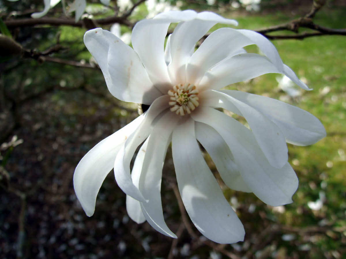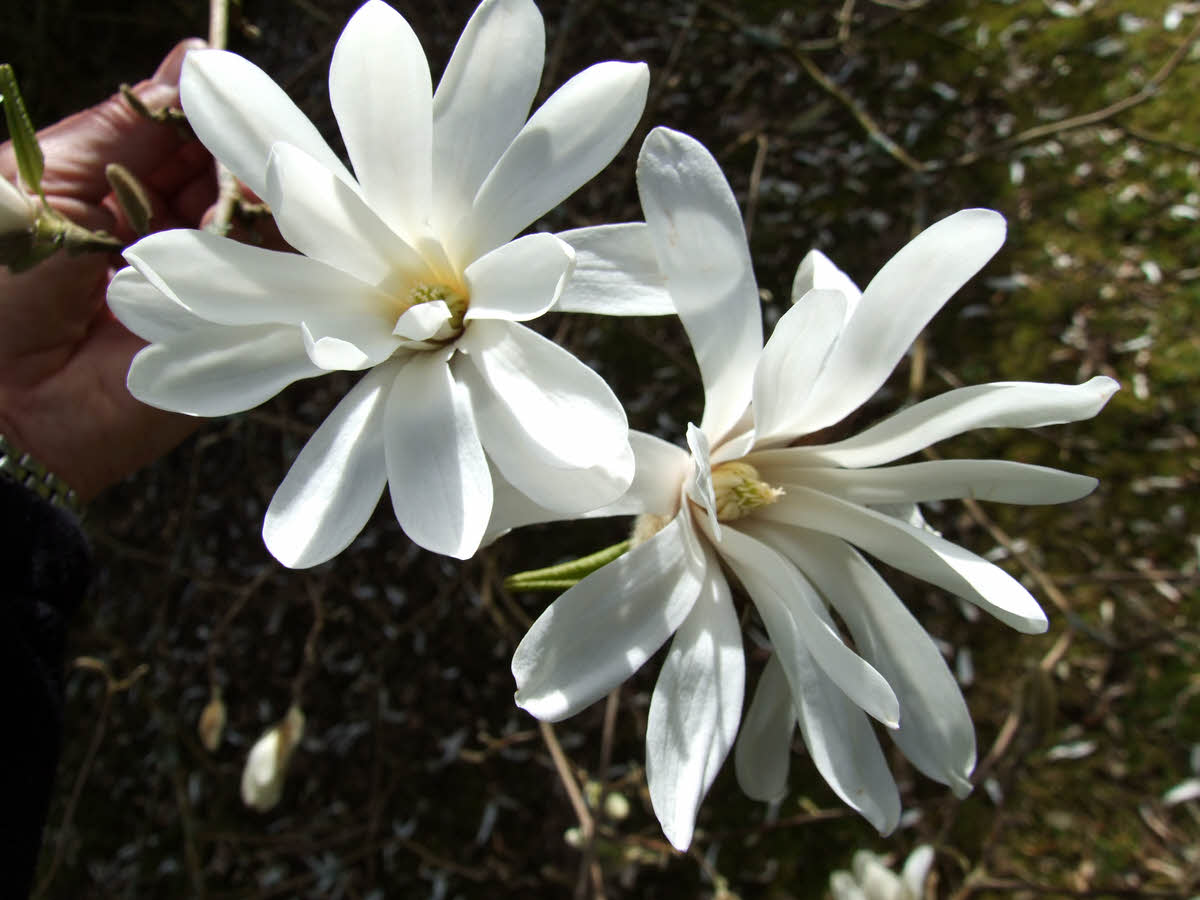 Flowers: white with up to 30 tepals, which have a pink stripe up the back.