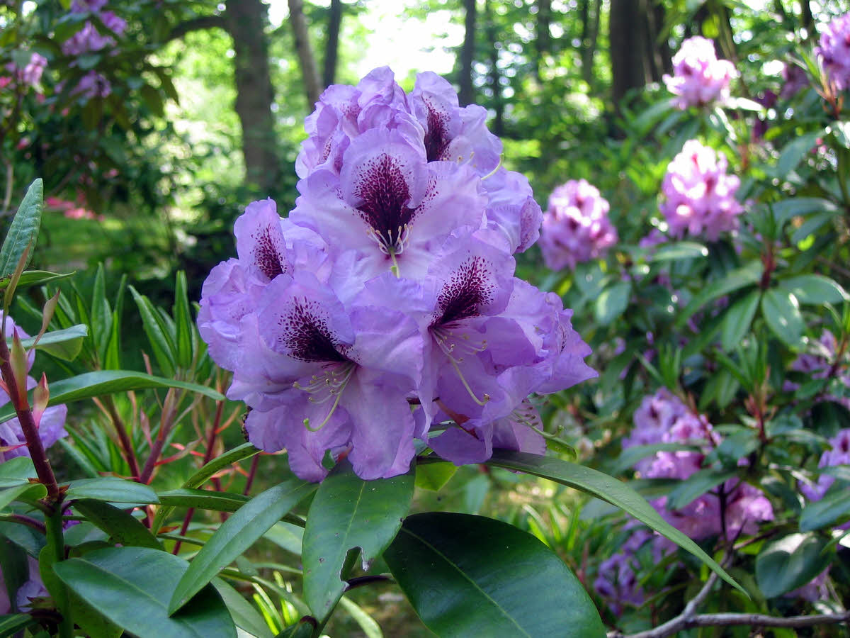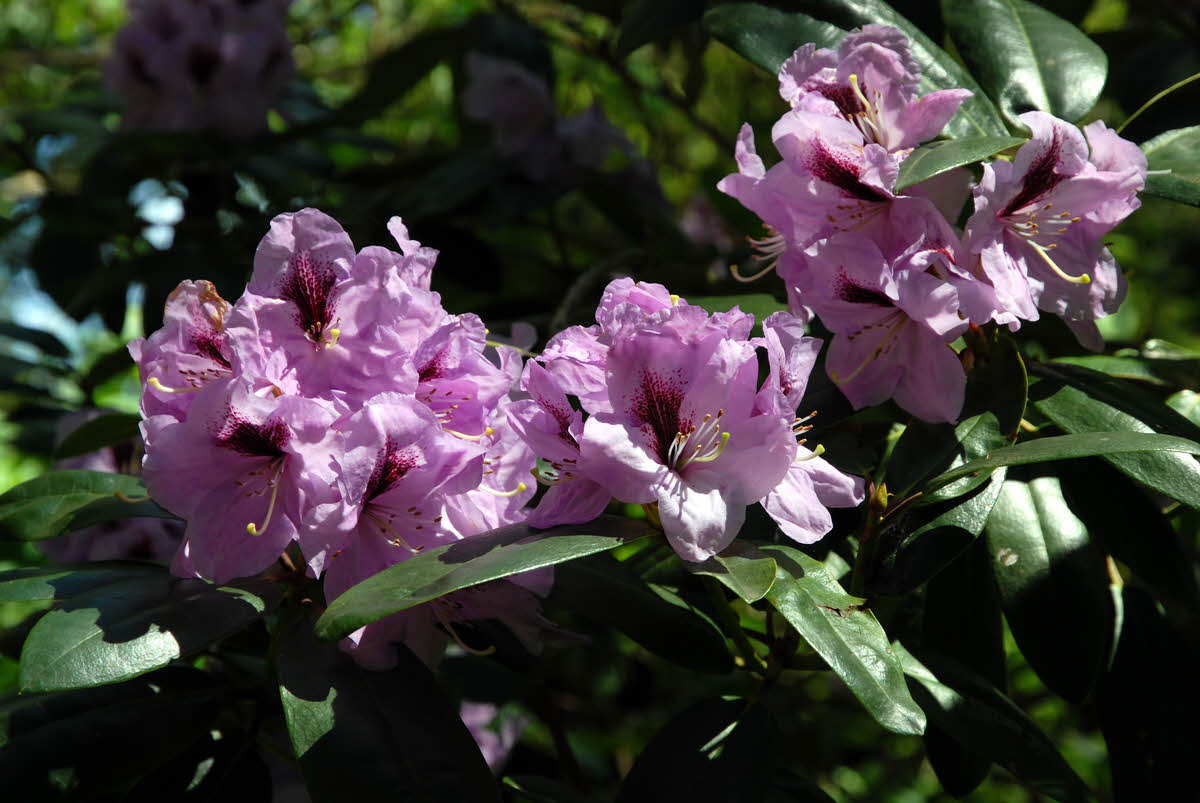 Flowers: 11-16/compact pyramidal truss, funnel-shaped, 55 x 90mm, tube pale mauve, lobes darker, with dark rose madder, to nearly black markings inside; scented.