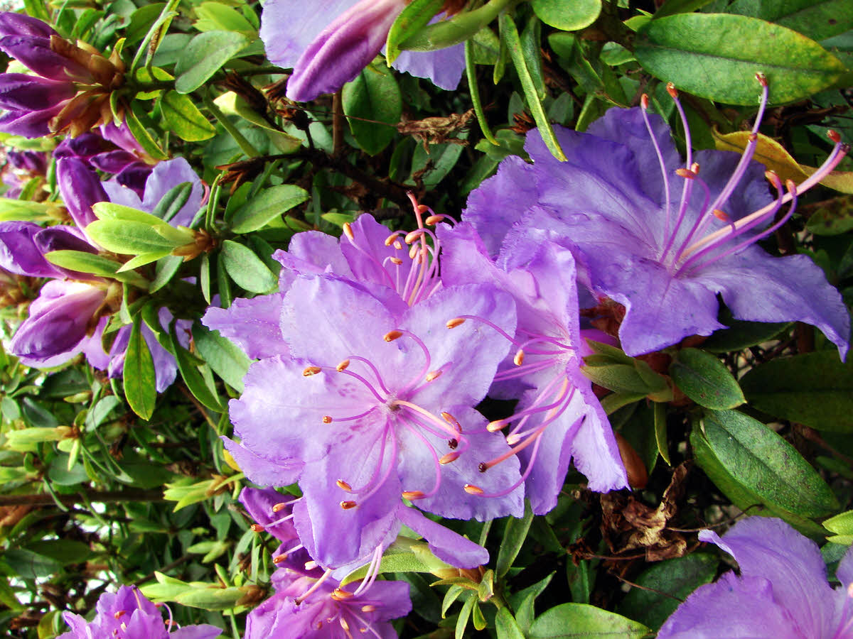 Flowers:7-10/compact truss, almost flat. 50mm wide, rich blue; style and stamens long exserted.