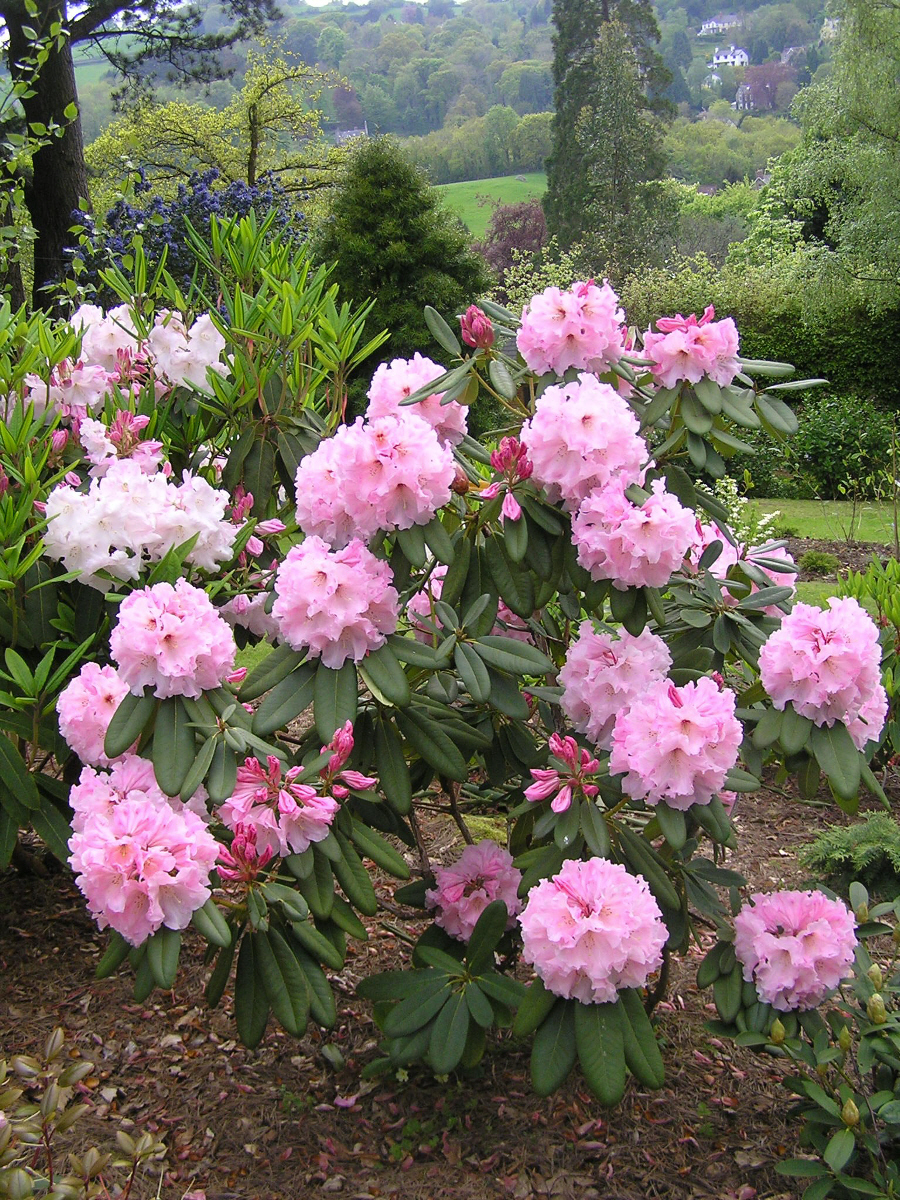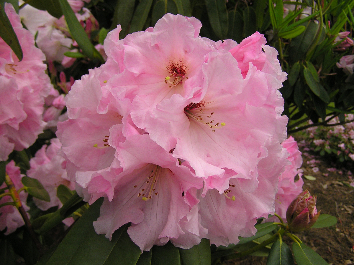 Flowers: 14/truss, campanulate, 80 x 108mm, with wavy-edged lobes, whitish pink with chocolate spotting in