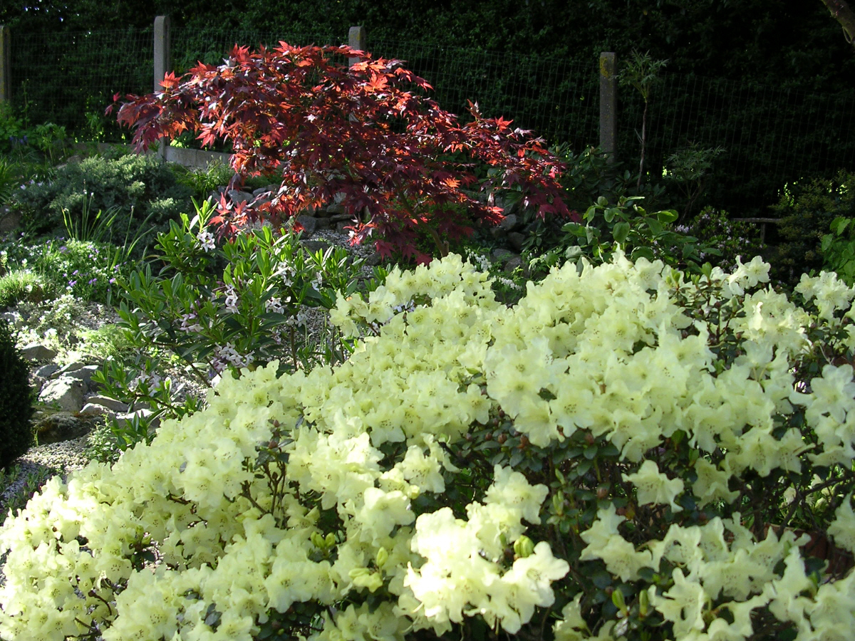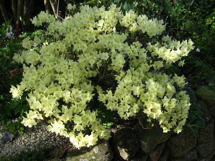 Flowers: 3-6/truss, saucer-shaped, 25 x 30mm, pale greenish yellow, with faint, deep yellow, dorsal spots.