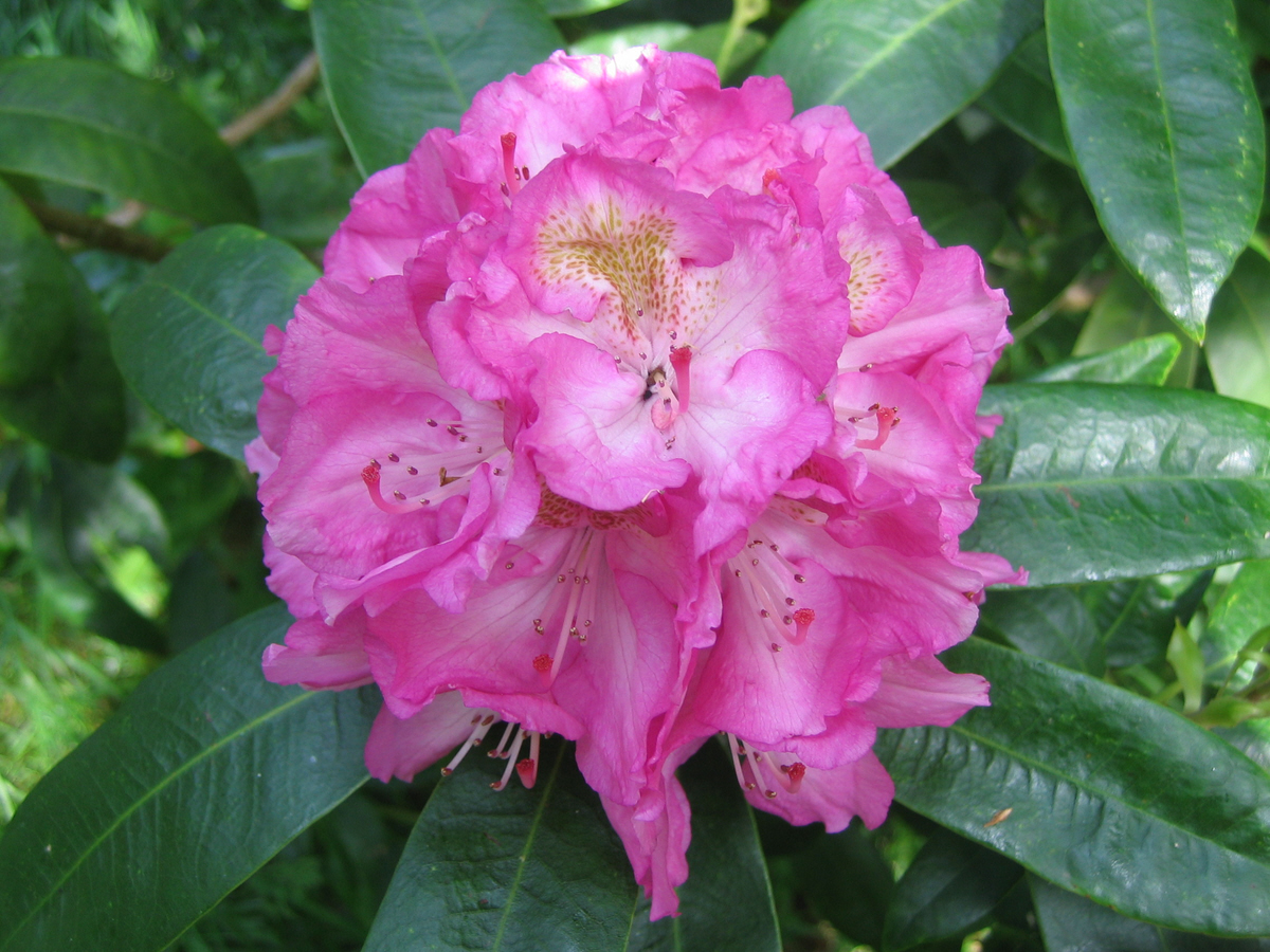 Flowers: c11/truss, broadly funnel-shaped, 50 x 80mm, bright lilac pink, fading to white in centre,
