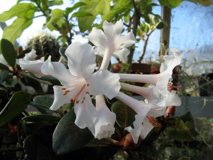 Rhododendron 'Felicitas''Nancy Miller Adler' X konori Flowers: 50 x 50mm, pure white; scented. Compact shrub.