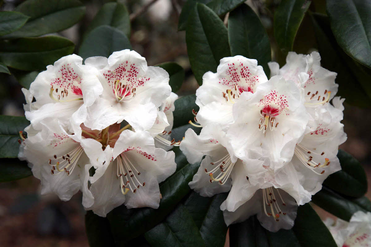 Rhododendron 'Jack Skilton'lacteum X 'Mrs Lindsay Smith' Shrub to 1.9m Flowers: creamy yellow, with red spots.