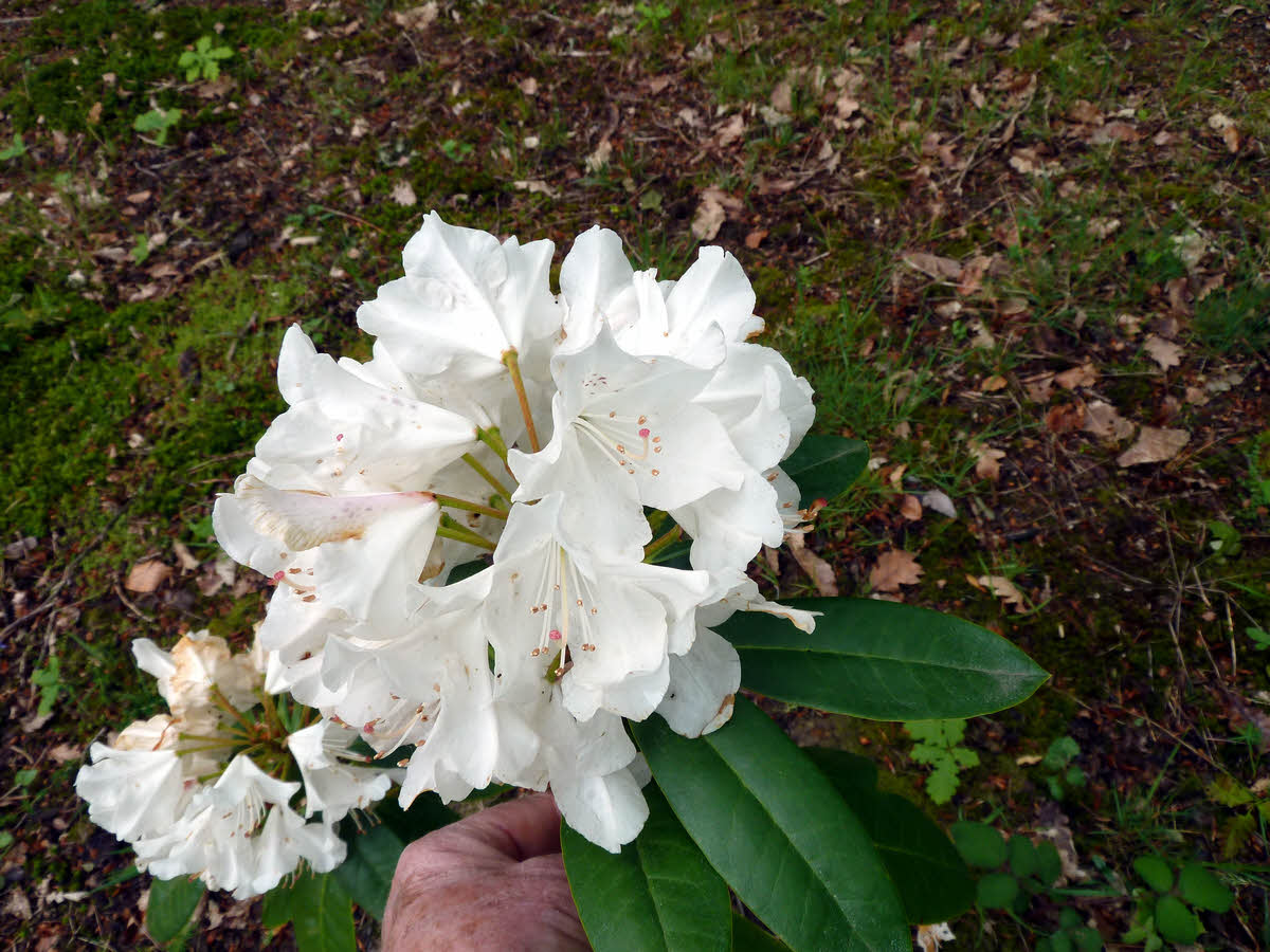 Rhododendron 'Jewess'caucasicum hybridFlowers: dark purple in bud, opening to white with brownish spots on dorsal lobe.