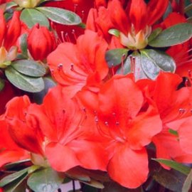 Flowers: 4-5/truss, 30-40 × 20-30mm, 5-lobed, strong red (45D); not scented. Calyx 1-2mm long, brown.