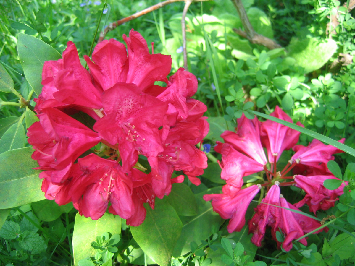 Flowers: cerise red, with dark brown spots on a paler ground.