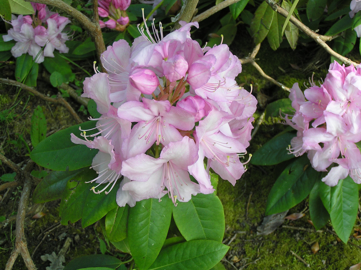 Flowers: up to 17/conical truss, very wide open, 80-95mm wide, mauve pink with a paler centre, unmarked. Calyx very small.