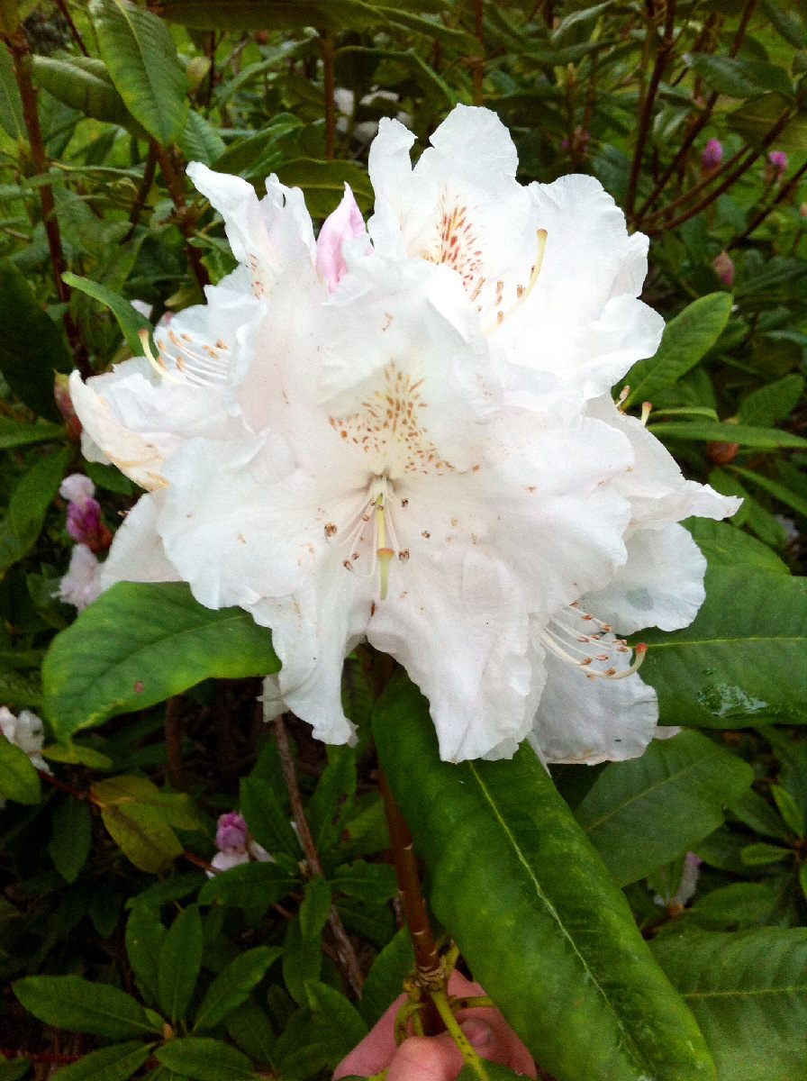 Foliage: elliptic, 110 x 40mm, dark glossy green and bullate above.