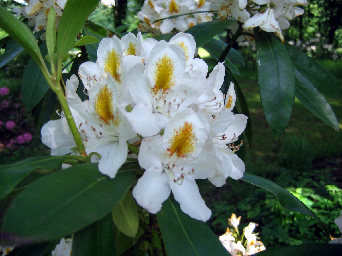 Flowers: 15-17/compact truss, very open, ivory white, with a large brown blotch on the dorsal lobes.