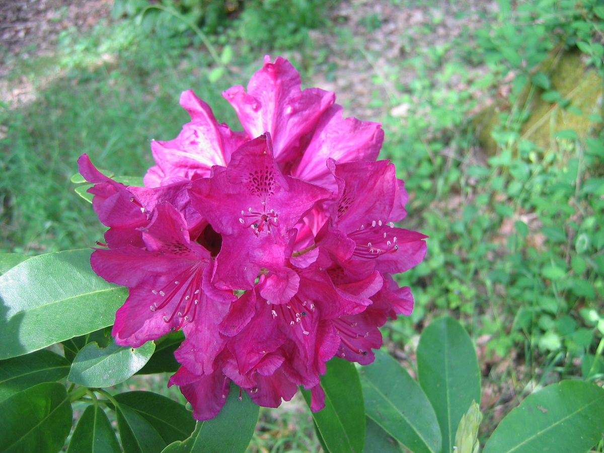 Flowers: c15/truss, broadly funnel-shaped, 45-50 x 60-70mm, vinous crimson, with blackish crimson marks.