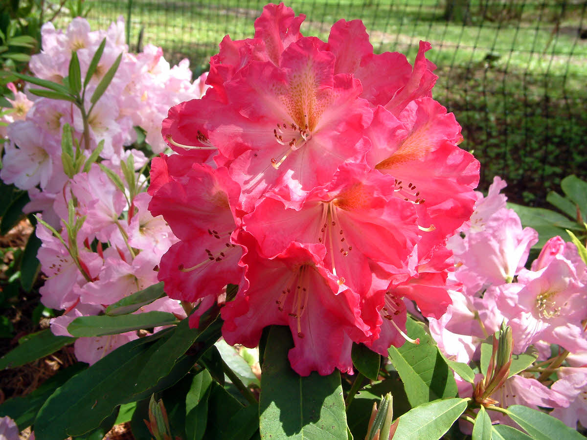 Flowers: 13/ball truss, open funnel-shaped, 75mm wide, with 5-6 wavy-edged lobes, strong pink with inconspicuous dark red spotting on the dorsal lobe and slightly on adjacent lobes.