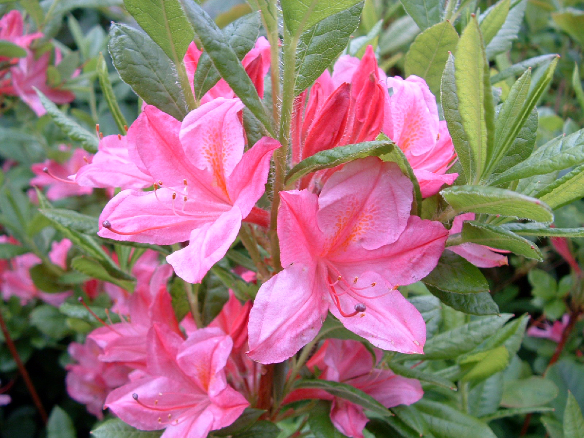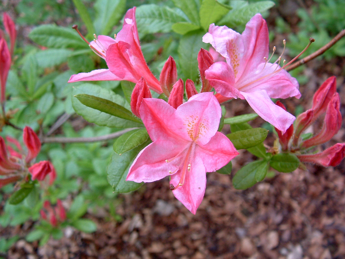 Flowers: single, 7-11/truss, tubular funnel-shaped, c48mm long, deep to moderate purplish pink, with deeper redder midveins and deeper buds, a few inconspicuous orange spots in dorsal throat.