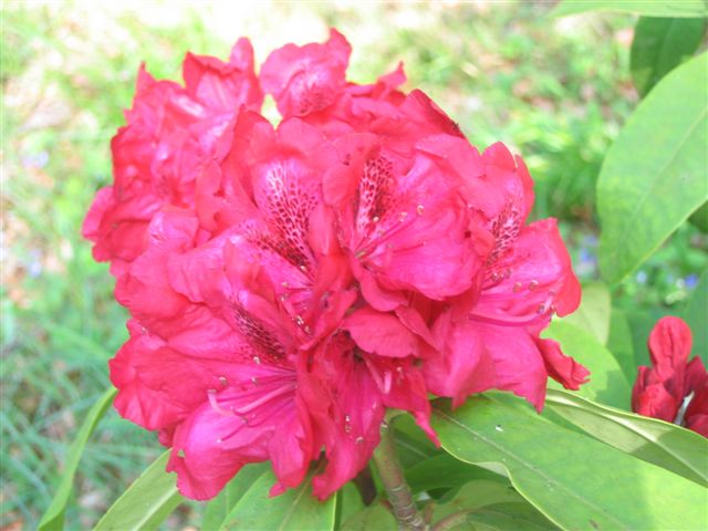 Rhododendron 'Trilby''Queen Wilhelmina' (s) X 'Stanley Davies' Flowers: deep crimson, with a dark blotch. Foliage: matt green. Shrub 1.5m in 10 years.