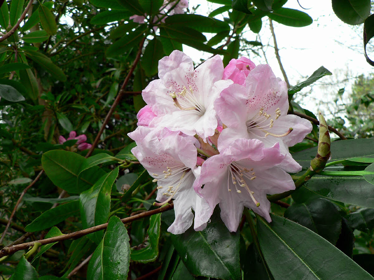 Flowers: 8-12/truss, campanulate, small, 26-45mm long, white, rose, deep rose or purplish-pink, with crimson spots