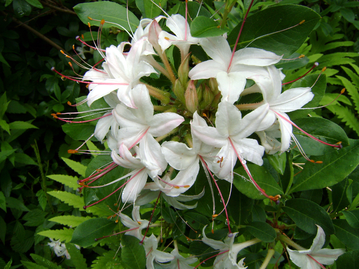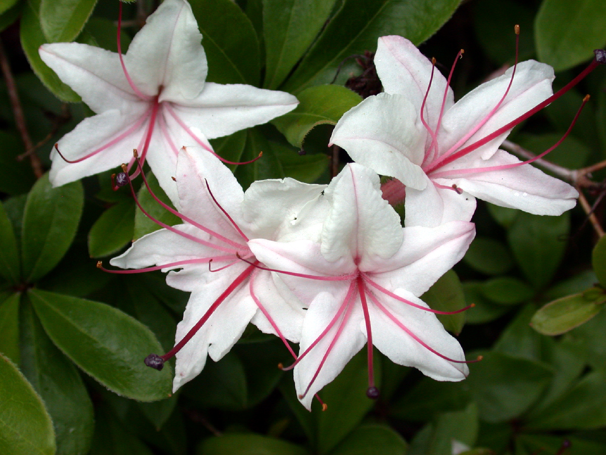 Flowers: trusses of 3-8, tubular funnel-shaped, 35-52mm long, white or pink, with or without a yellow blotch; very fragrant.