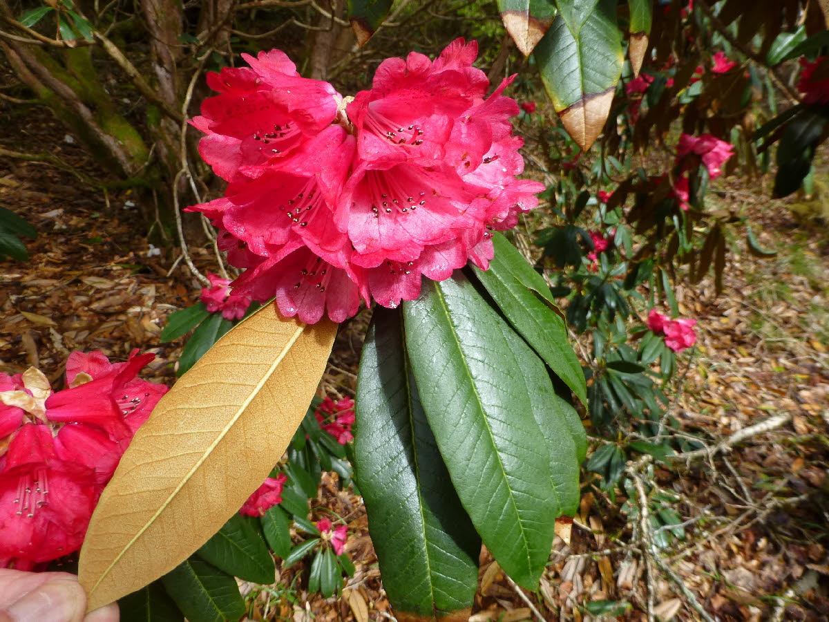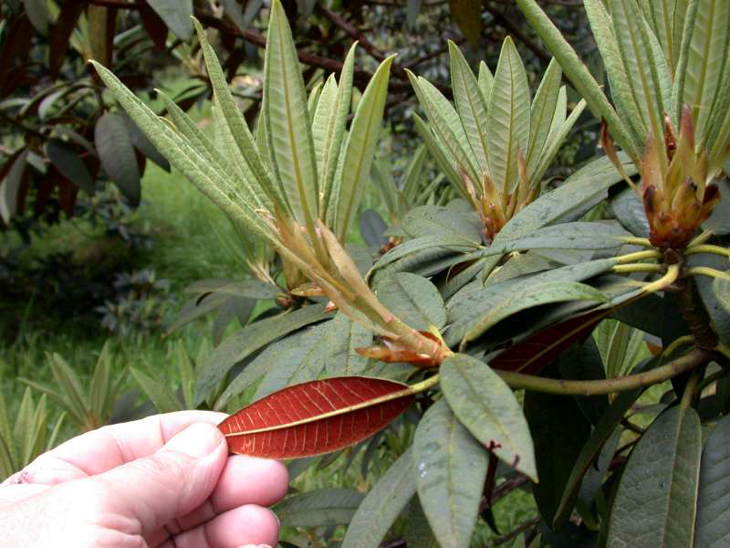 Foliage: oblong-lanceolate or lanceolate, 68-135 x 21-38, upper surface dark green or olive green, glabrous; lower surface matt with thin, woolly, continuous indumentumm, upper layer cinnamon, rust-coloured or dark brown.