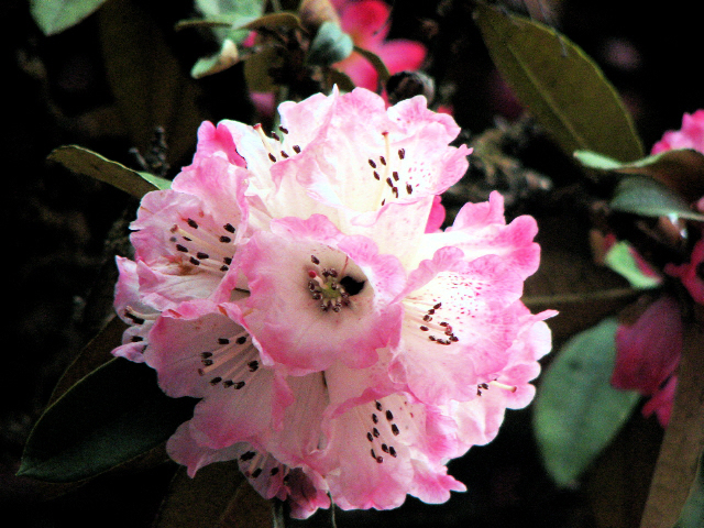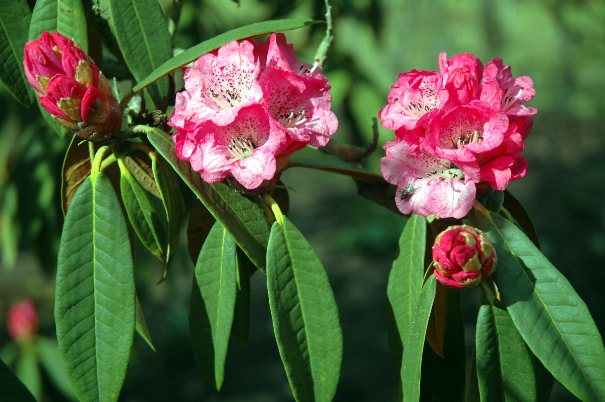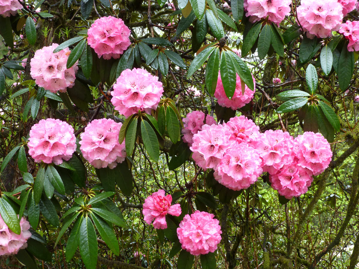Flowers: very compact truss of 15-20 flowers, tubular-campanulate, 26-38mm long, purplish-rose, pink, purple, scarlet or crimson, 5 nectar pouches.