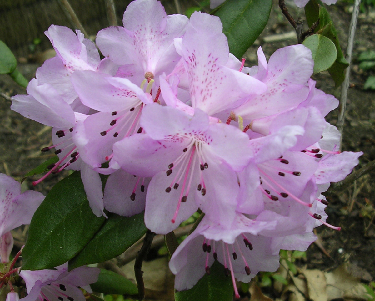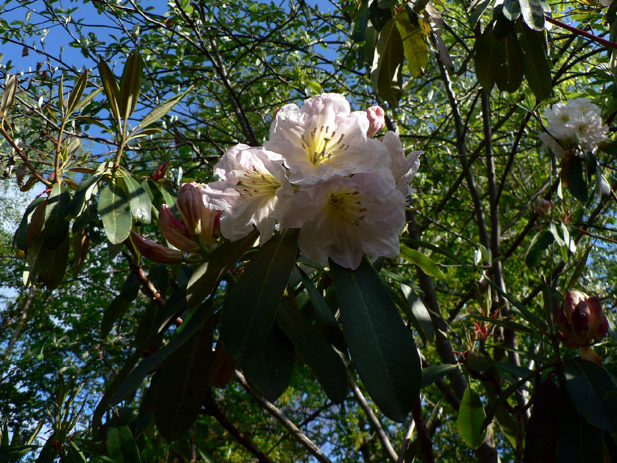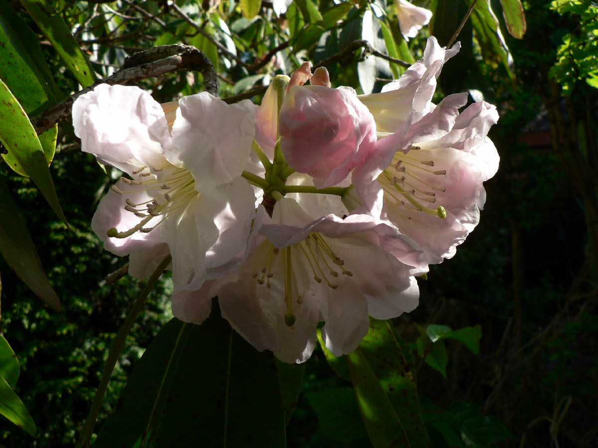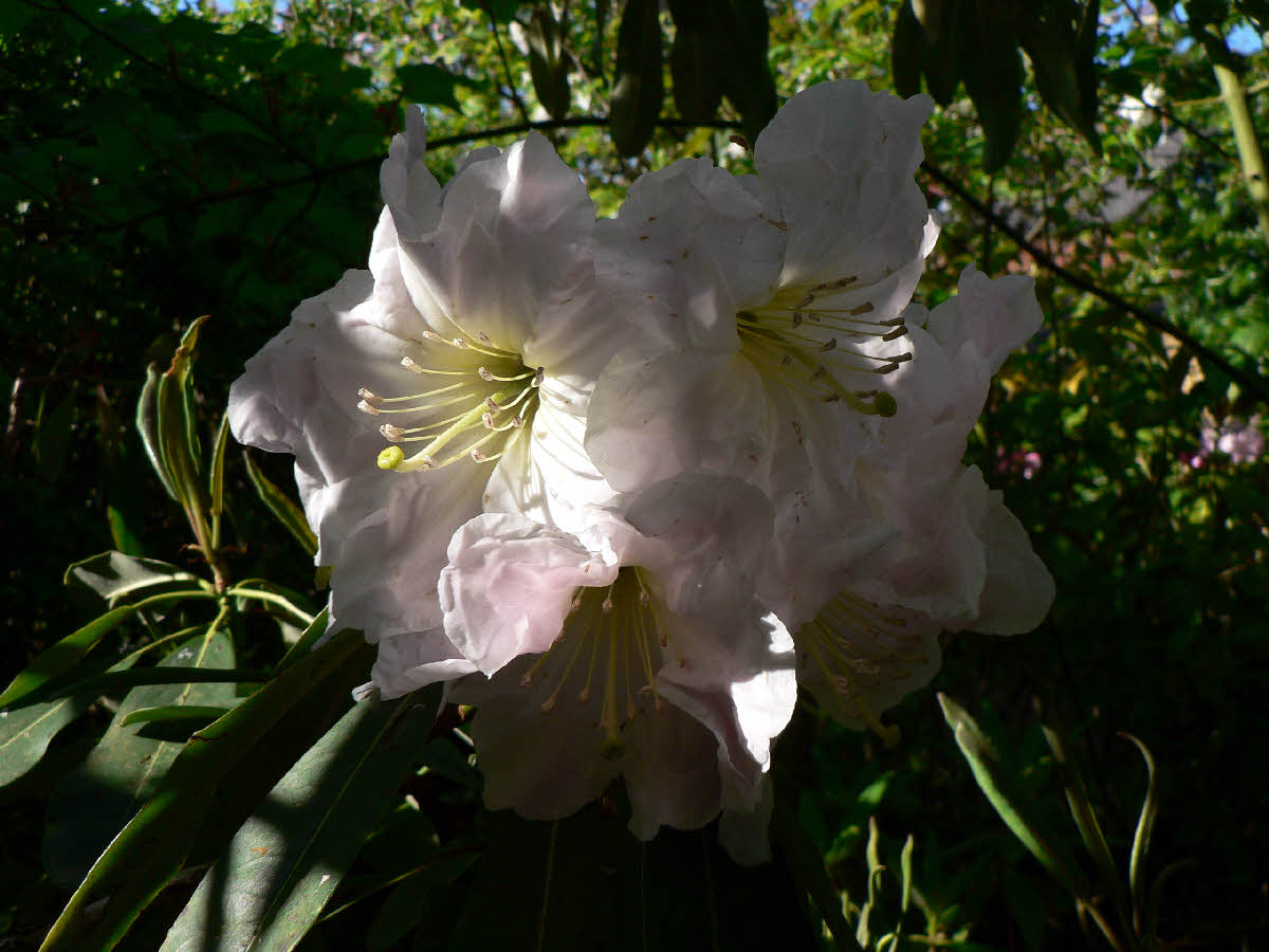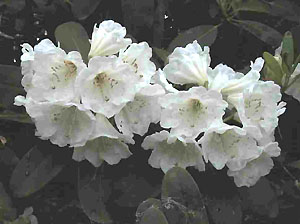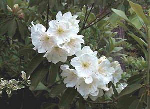 Flowers: lax or rounded trusses of 5-10 white sometimes flushed rose to 7cm