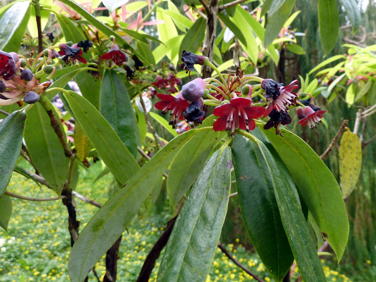 Flowers: racemose, 6-15/truss, tubular-campanulate, 12-18mm long, fleshy, deep plum-purple, covered with glaucous bloom.