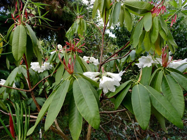 Leaves: oblong-lanceolate or oblanceolate, 120-200 x 20-60mm, upper surface dark green, glabrous, underside pale glaucous green, glabrous.
