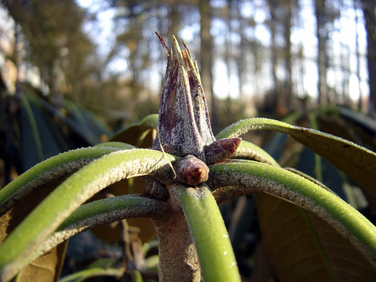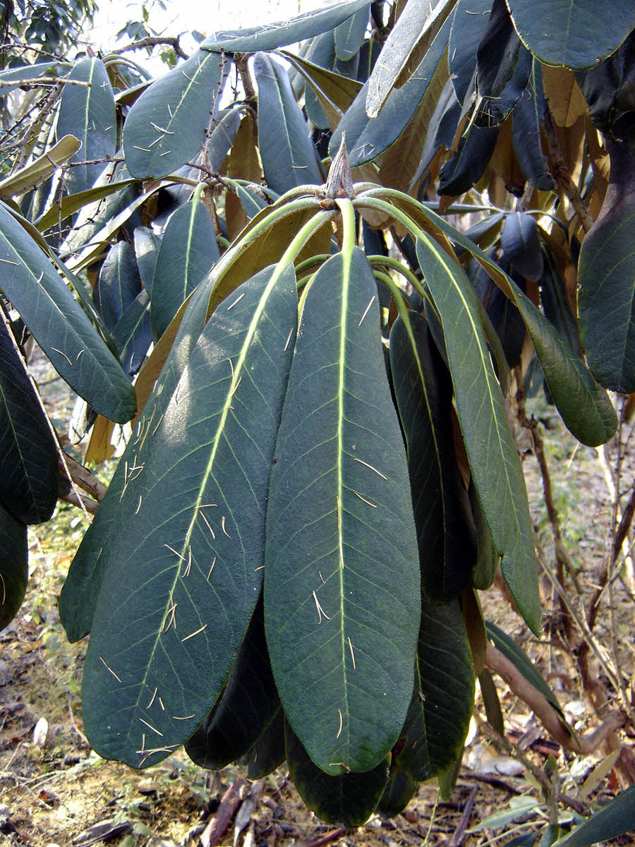 Recognise by: brown flaking bark, mica-like white patches of indumentum on upper leaves. Petiole