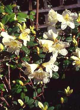 Flowers: creamy white, but usually through pale yellow with a deeper throat, sometimes