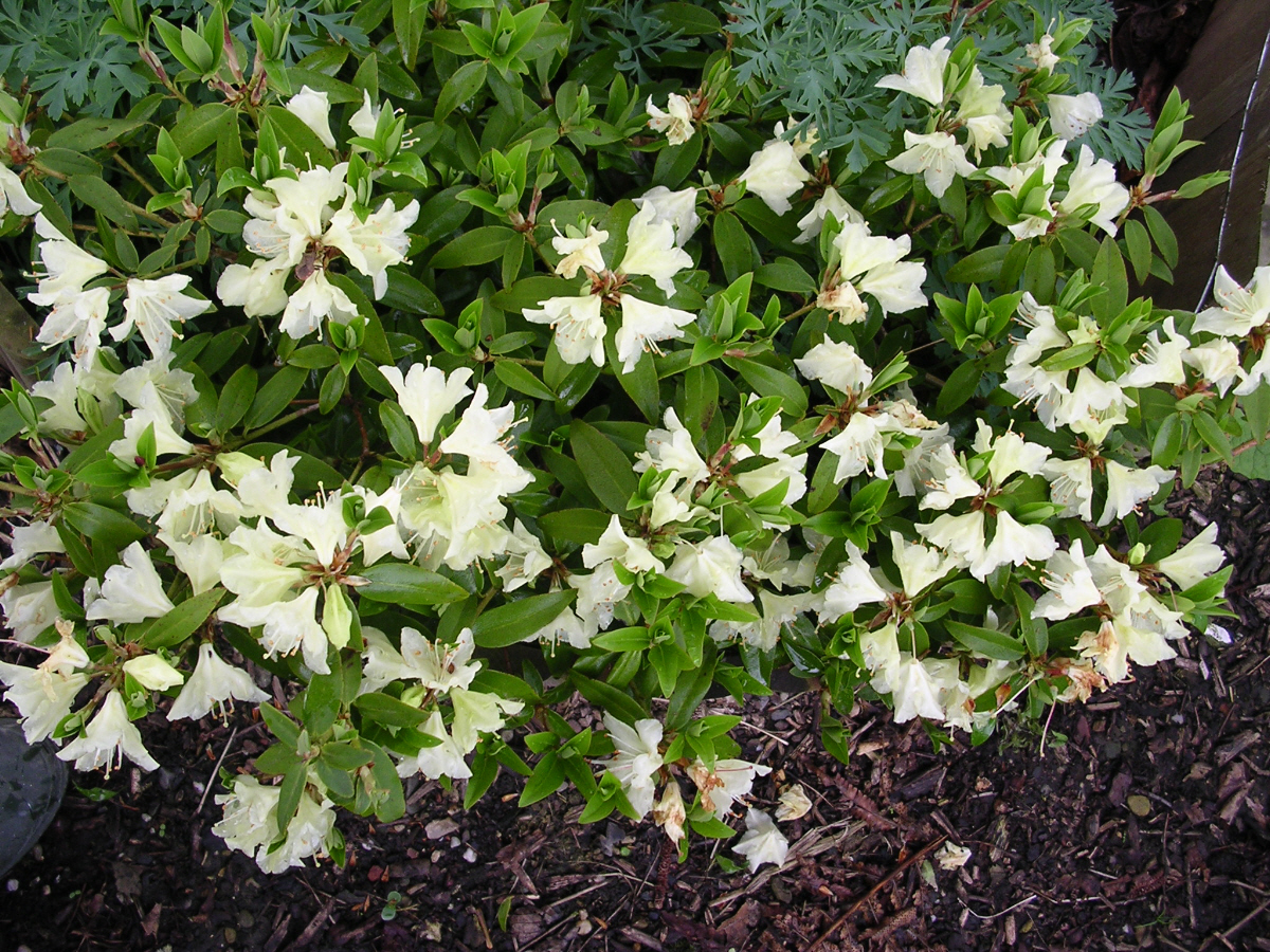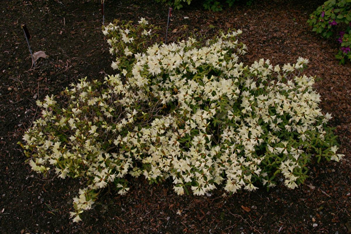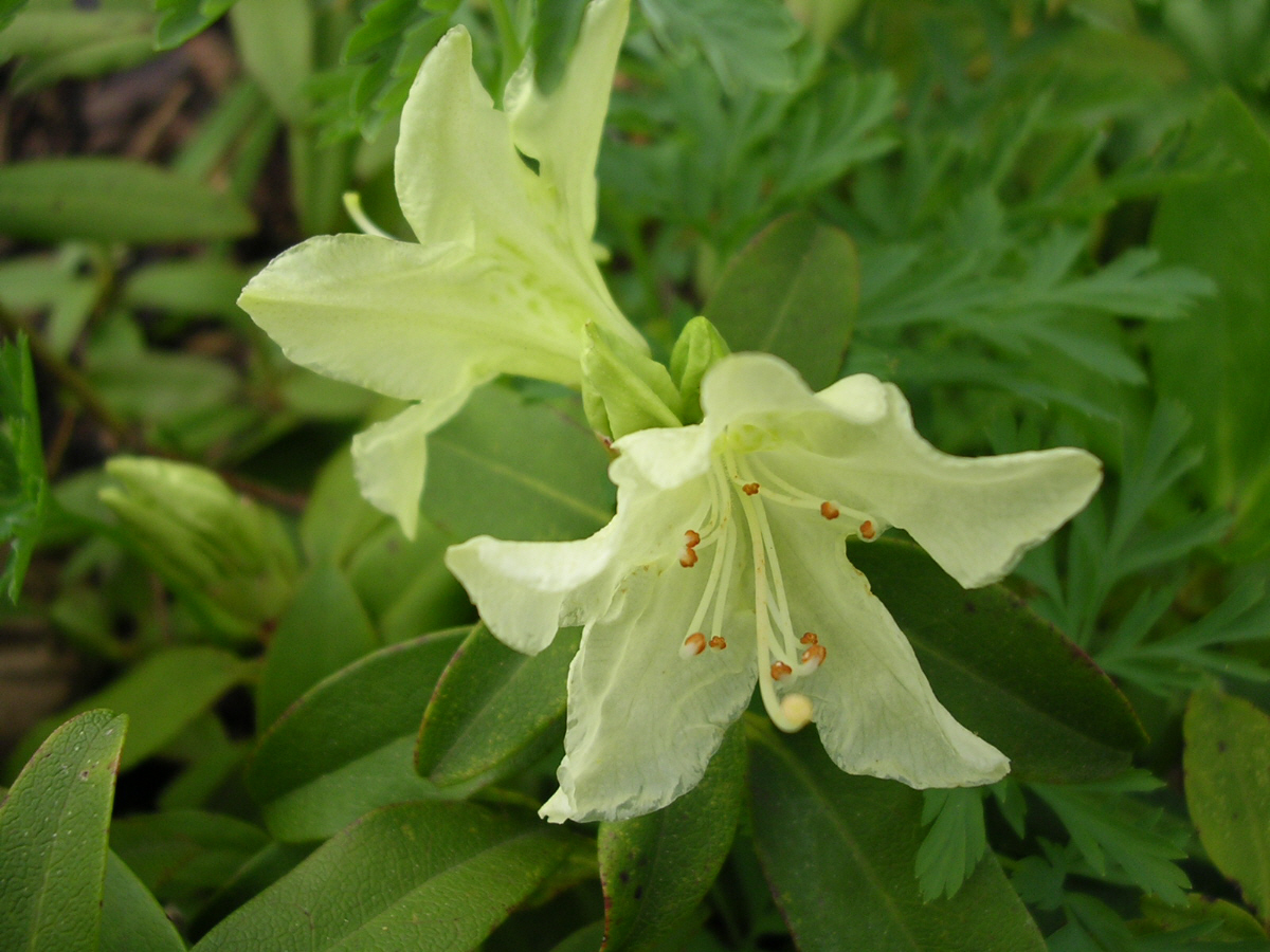 Flowers: trusses of 2-6 lemon yellow unspotted flowers (the clone).