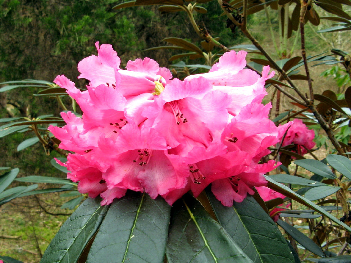Flowers: 16-50/very compact truss, tubular campanulate, 30-50mm long, rose-purple, 5 nectar pouches.