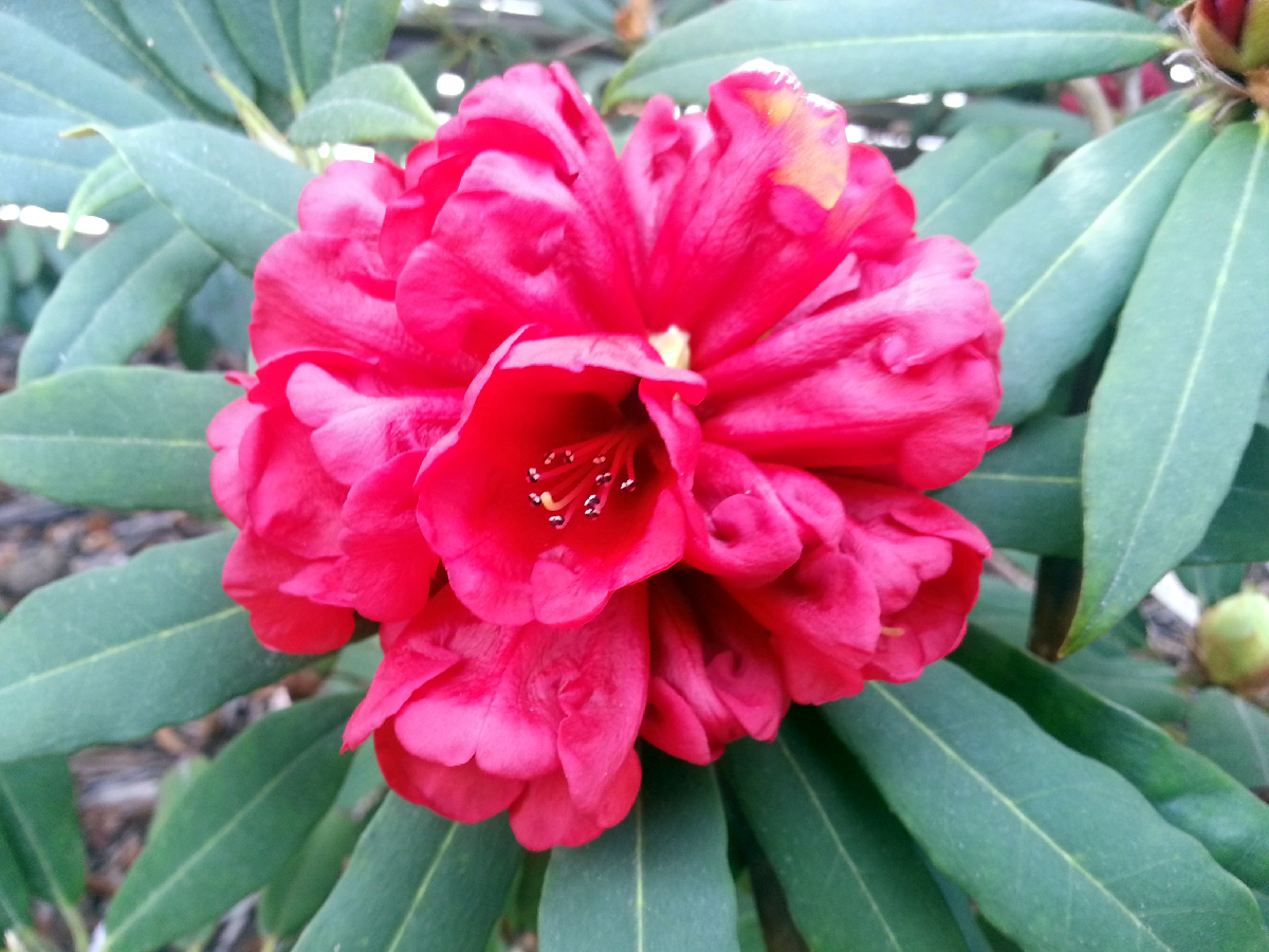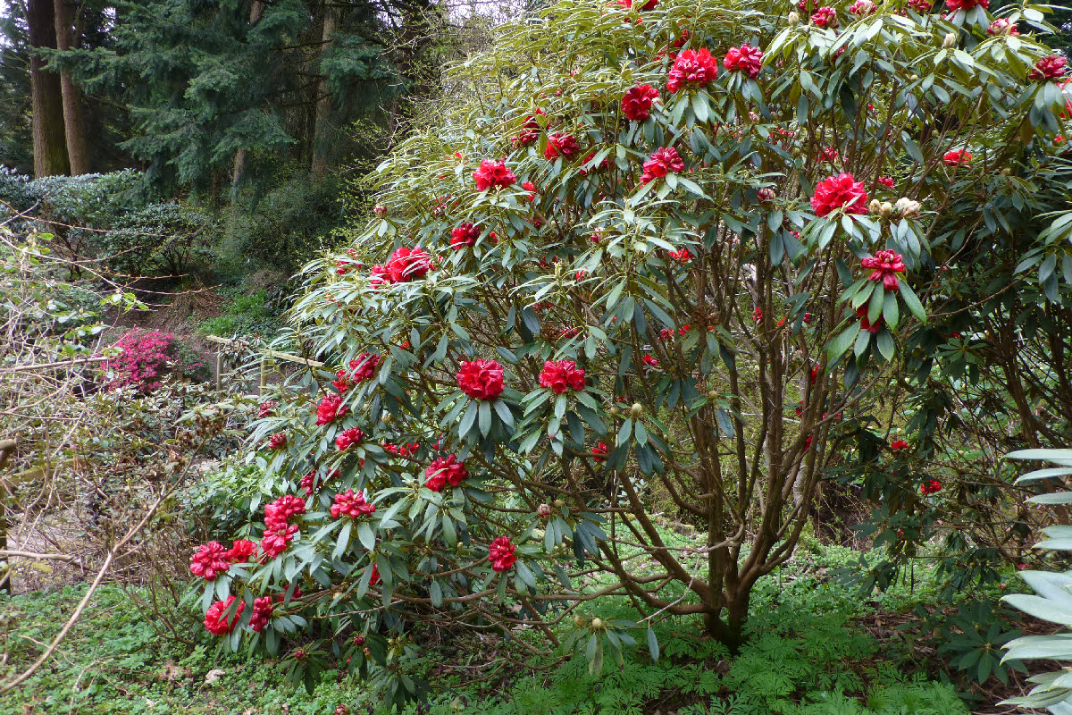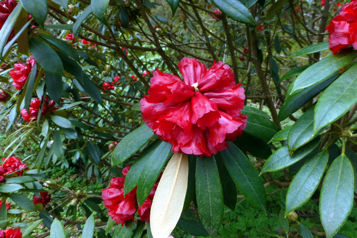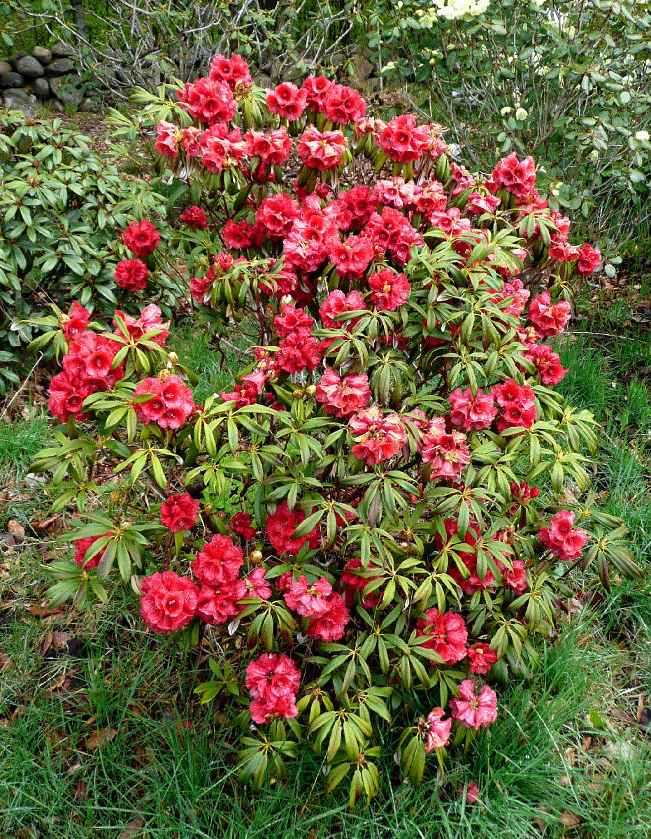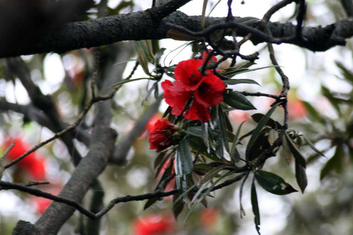 Flowers: 6-12/truss, broadly campanulate or tubular-campanulate, 25 - 40mm long, crimson, unspotted, 5 nectar pouches at base.
