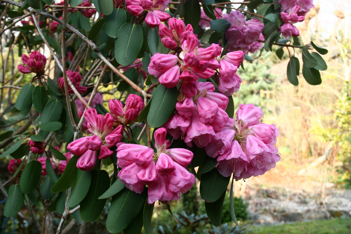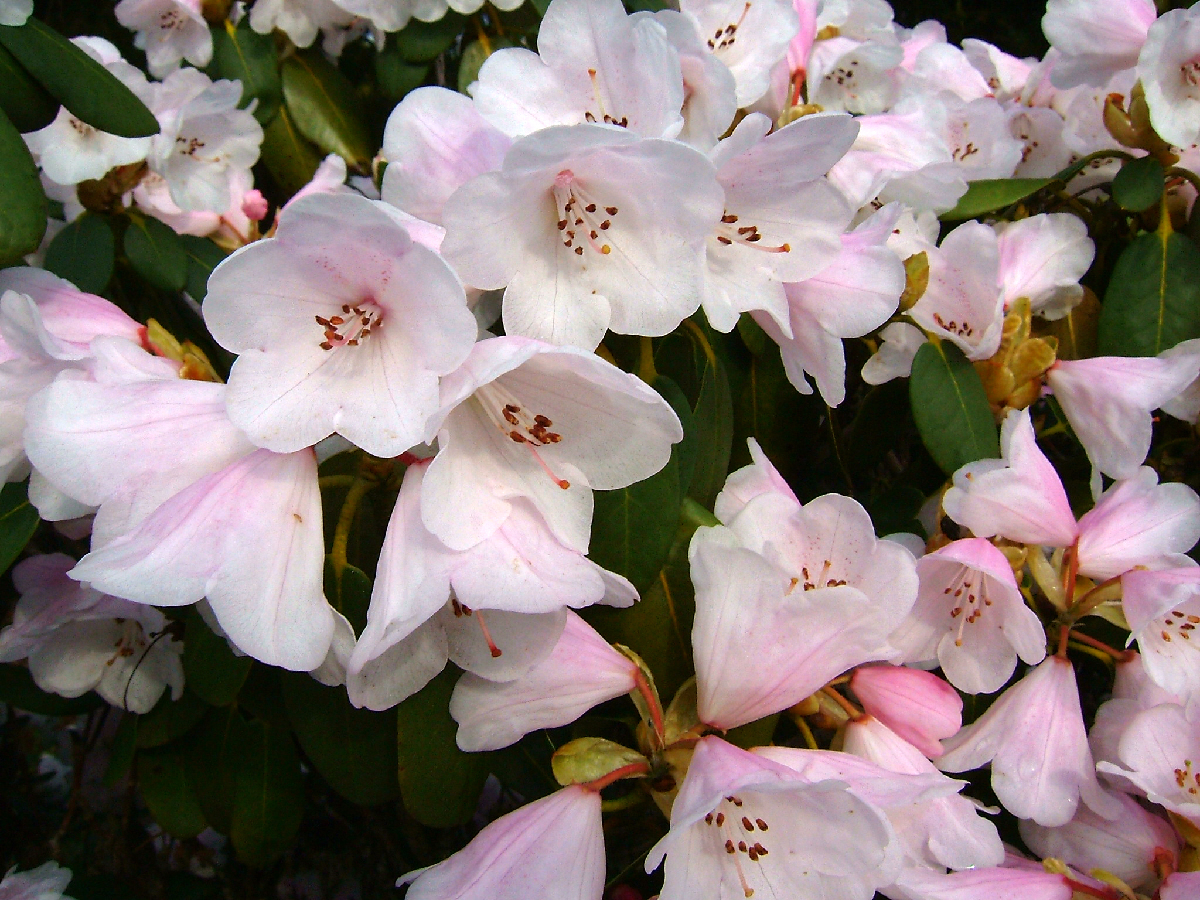 Flowers: lax trusses of 6-8 usually 6 or 7-lobed white through pink to deep rosy red