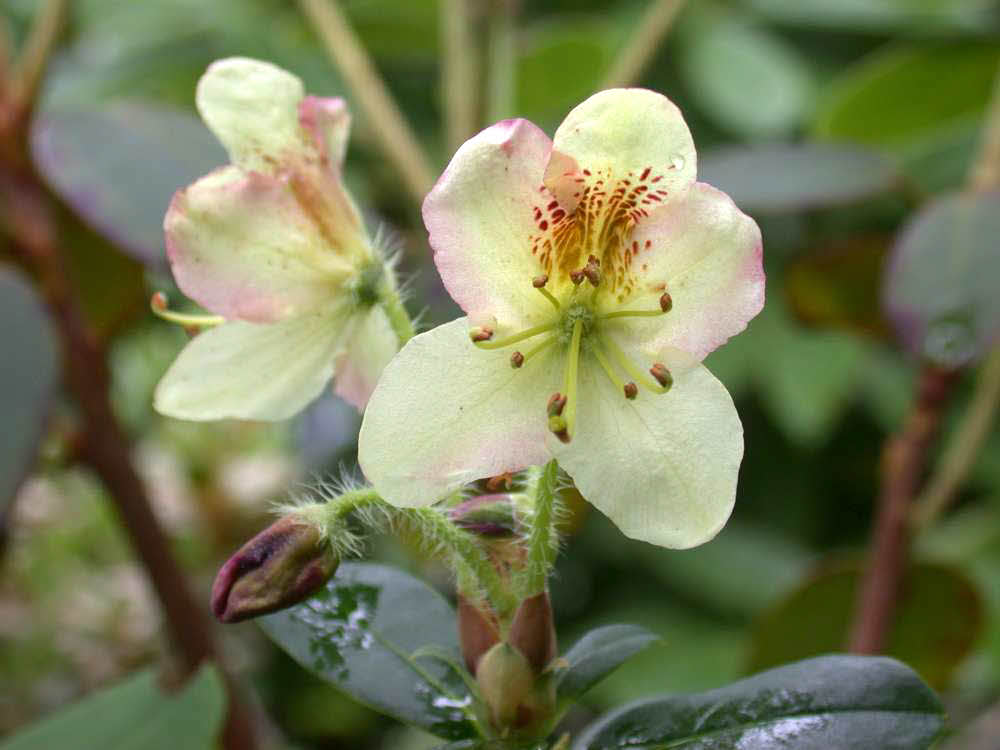 Rhododendron rubroluteumTrichoclada subsection Flowers: reddish yellow. Late flowering Leaves: evergreen. Collected only once from an uncertain locality. Rare in cultivation.