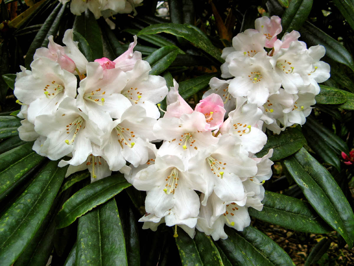 Flowers: 10-20/truss, campanulate, 23 - 30 mm long, white or white suffused pink.